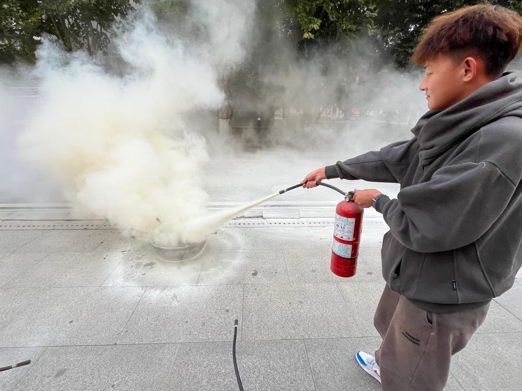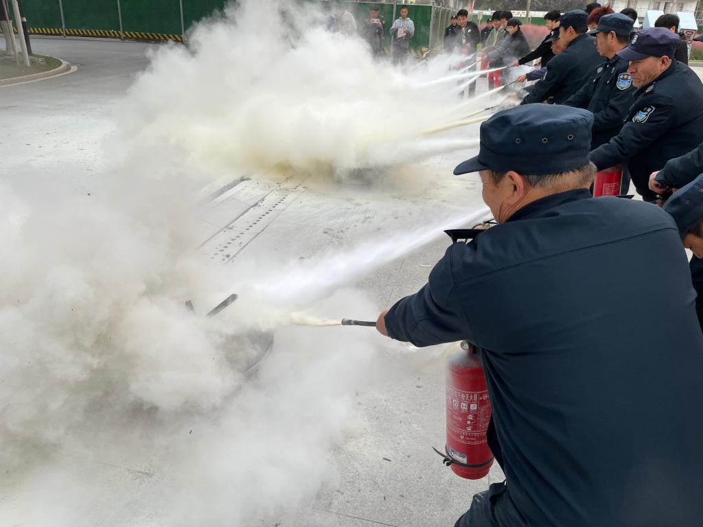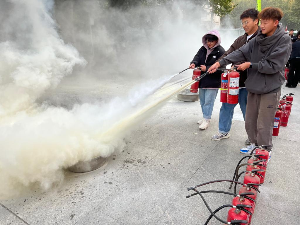 演练人员首先详解灭火器的使用要领,随后用就初起火灾的处置进行示范,紧接着师生员工代表们有序上前,在保卫处工作人员的指导下,亲自操作“灭火”,提升了“实战”能力。