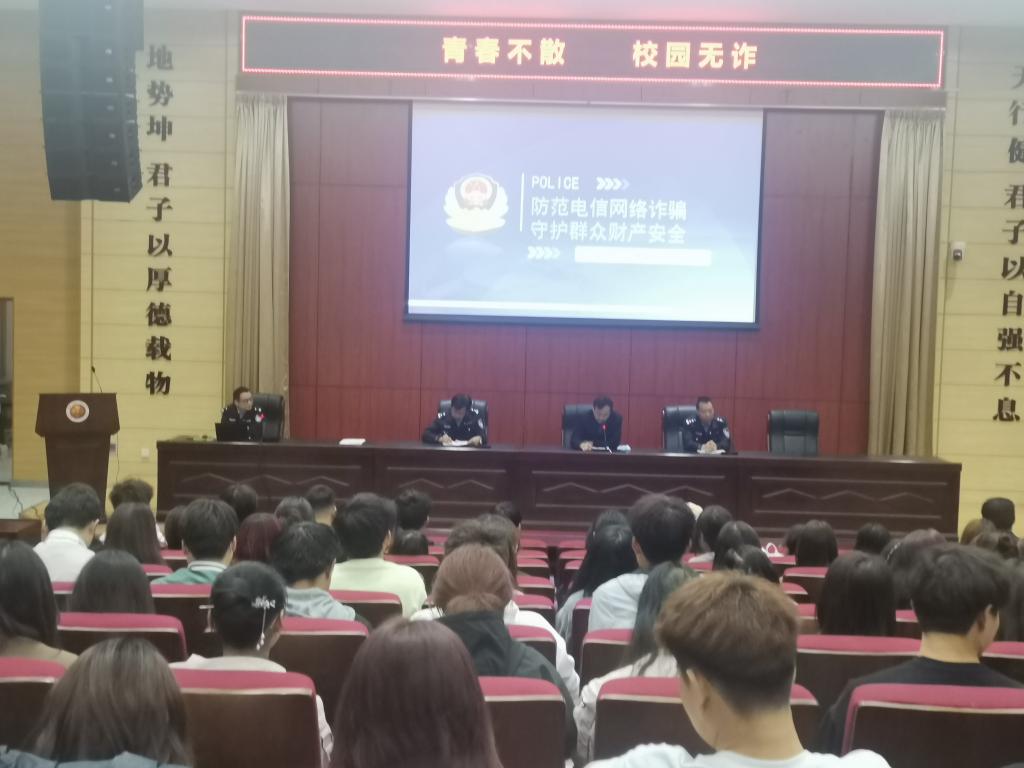 刘海鹏警官结合大学生群体中有关电信诈骗的高发案件和真实案例,以深入浅出、生动活泼的授课风格向学生普及了网络刷单、冒充熟人、冒充电商客服、网络游戏虚假交易、注销校园贷等电信网络诈骗的新形式新套路,并介绍了有效防范技巧,同时给师生讲授了辨别网络骗局的基本技能,为到场的每名学生发放“防范电信网络诈骗”宣传手册。刘警官还详细讲解了近年来深入开展“断卡”行动的重要意义,普及了出售、转借、购买“两卡”的严重危害和惩治力度,提醒大家在平时生活中不要随意将自己的卡转给他人,谨防成为电信网络诈骗帮凶。每个人都要谨记,“未知链接不点击”“陌生来电不轻信”“个人信息不透露”“转账汇款多核实”,要善用“国家反诈中心APP”,做好个人信息保护工作,遇骗不惊,不贪小利,从根源上杜绝电信网络诈骗的发生,同时,更不要为电信网络诈骗提供帮助。